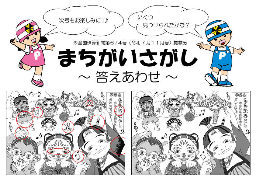 まちがいさがし 答えあわせ 全国珠算新聞第674(令和7年11月号)に掲載した「まちがいさがし」の答えです。 皆さんはいくつ見つけられましたか? なお、今回はまちがいが10箇所ございました。 ご迷惑をおかけしましたことを深くお詫び申しあげます。 教室掲示用のダウンロードはこちらから